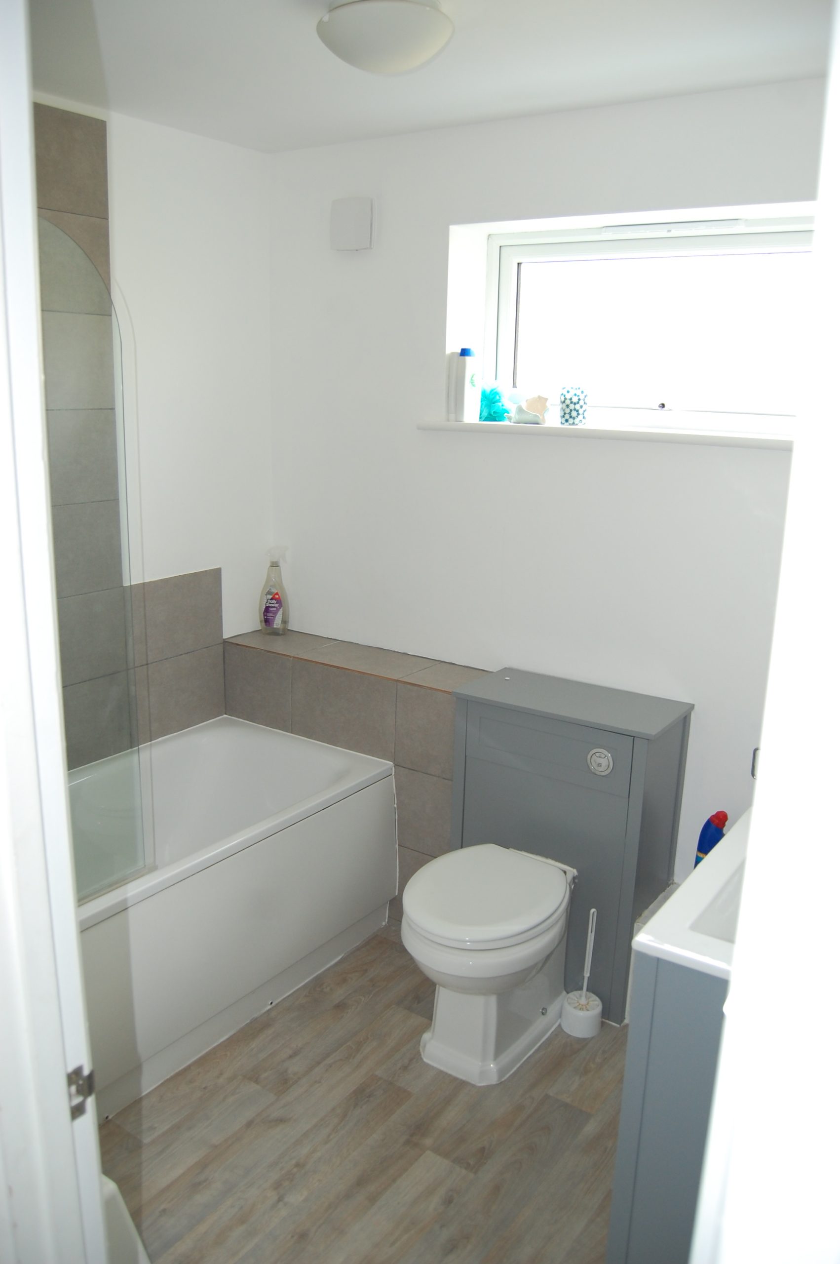 - Family bathroom with shower over bath